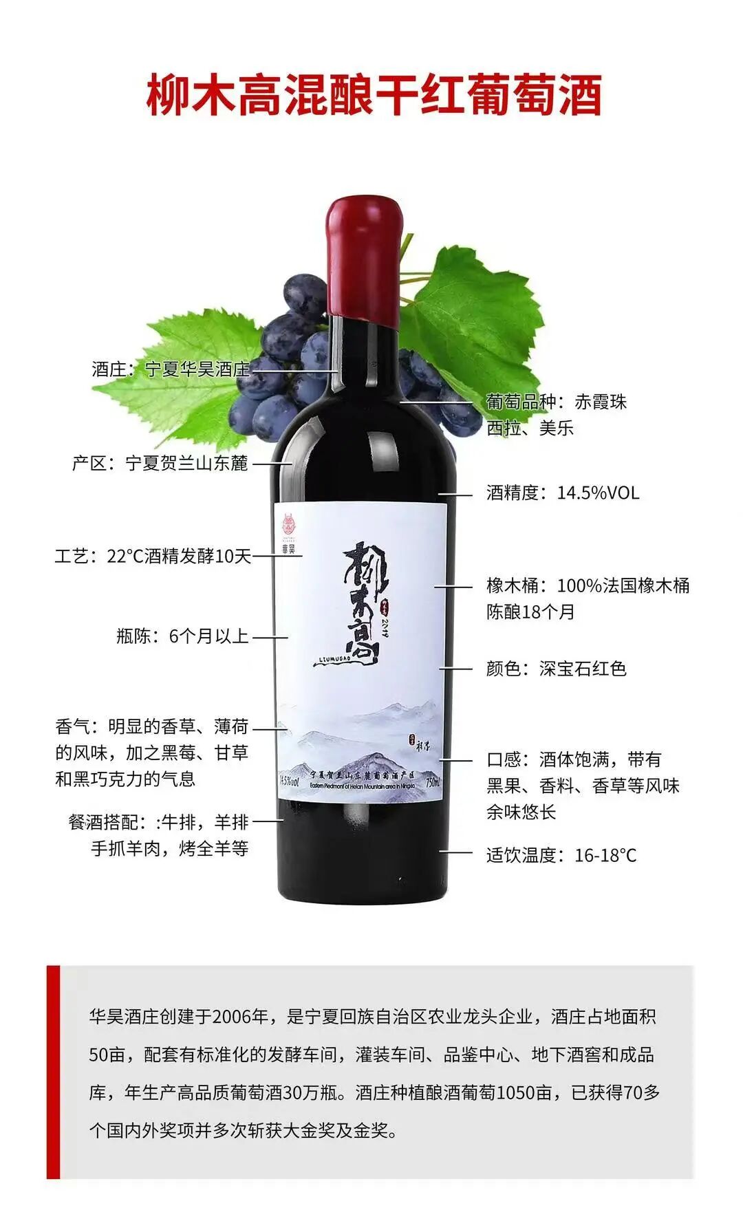 柳木高葡萄酒的品质,是华昊酒庄对品质的*追求和对风土人情的深刻理解所共同铸就的。酒庄内部建立的微气候气象监测站,能够*地分析每一处地块的气候条件,从而制定出*适合的种植方案。这种精细化的管理,使得柳木高葡萄酒在酿造过程中能够充分吸收大自然的精华,呈现出独特的口感和风味。