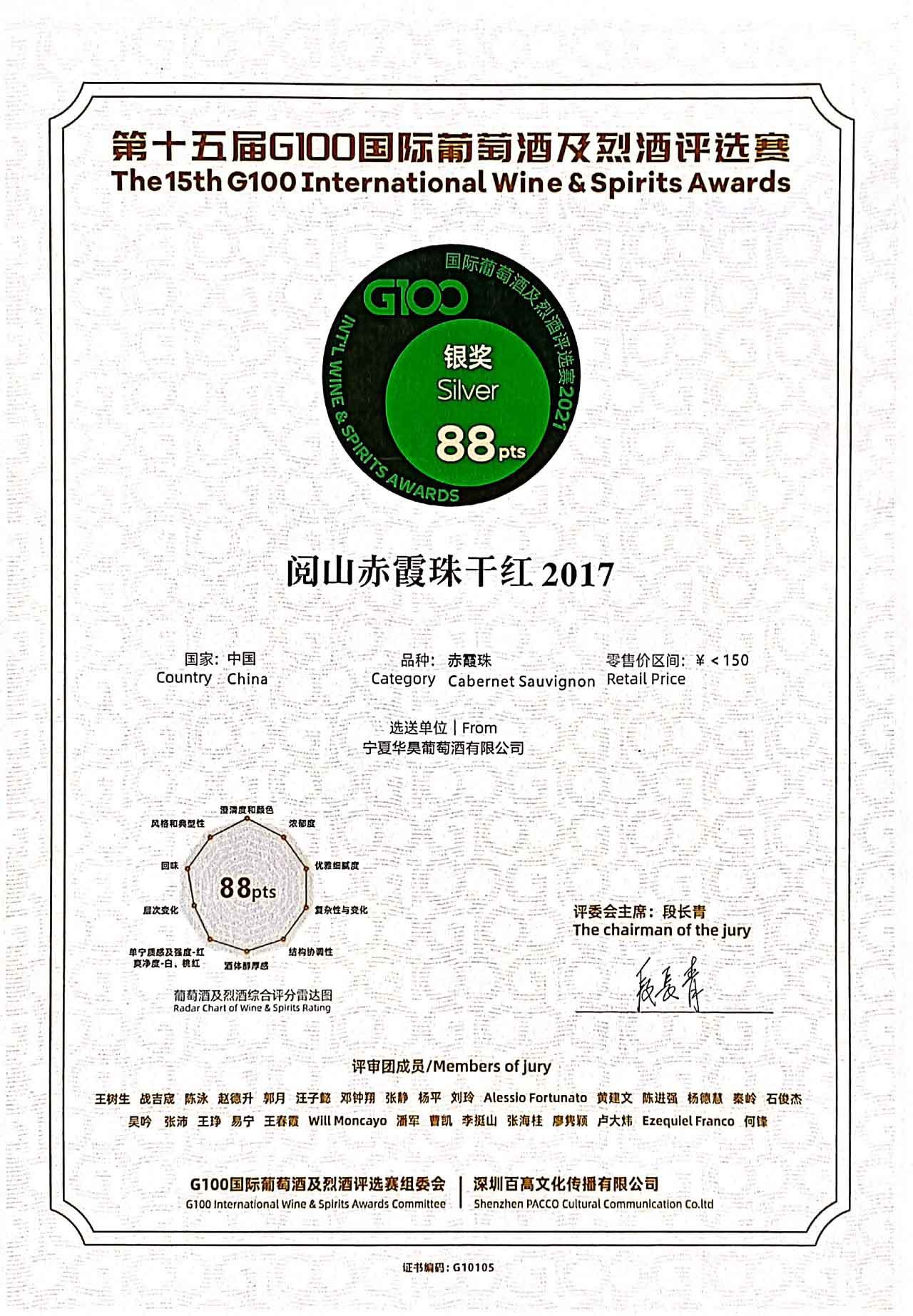 第十五届G100*葡萄酒及烈酒评选赛 银奖