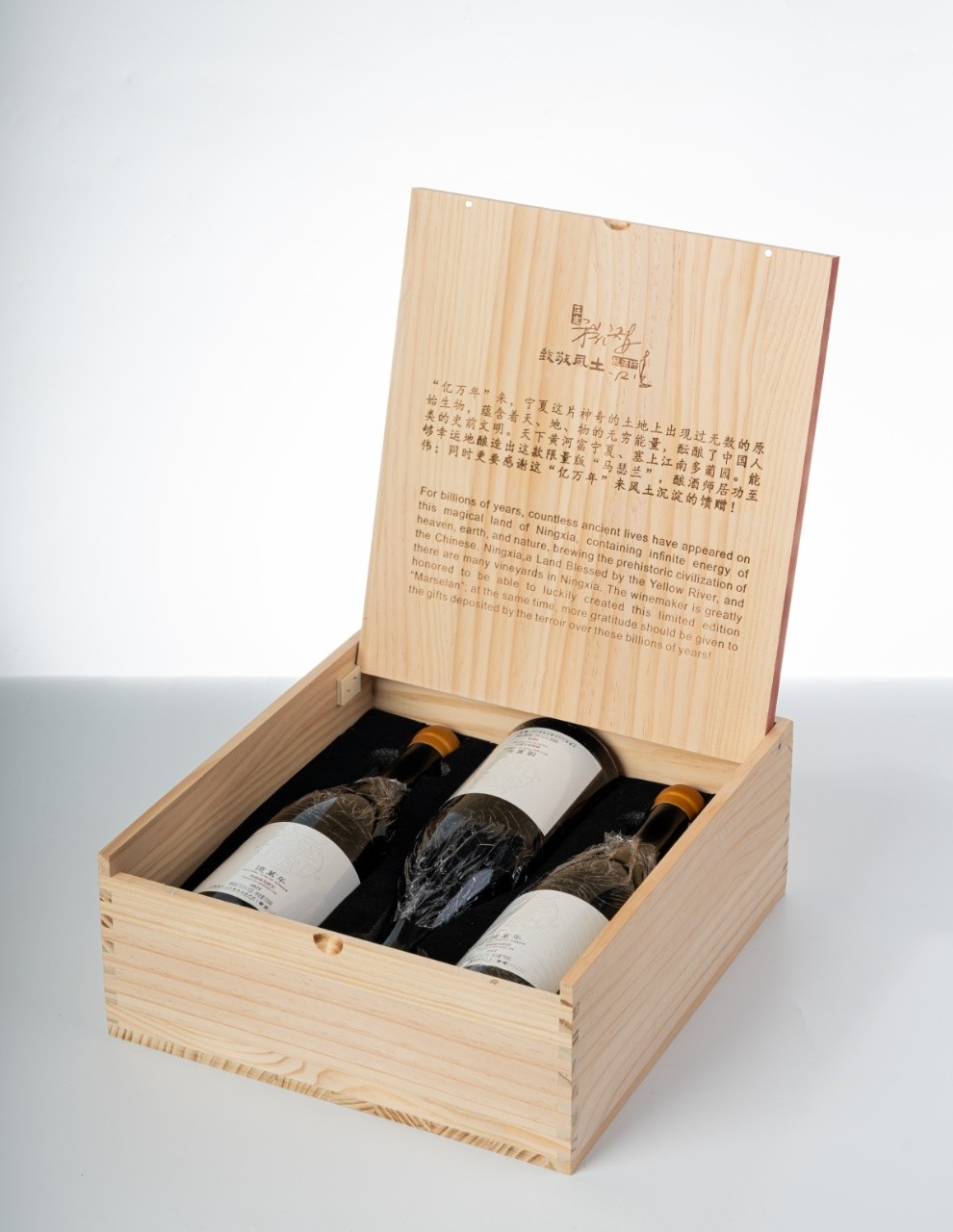 品牌故事:“亿万年”来,宁夏这片神奇的土地上出现过无数的原始生物,蕴含着天、地、物的无穷能量,酝酿了中国人类的史前文明。天下黄河富宁夏、塞上江南多葡园。能够幸运地酿造出这款限量版“马瑟兰”,酿酒师居功至伟;同时更要感谢这“亿万年”来风土沉淀的馈赠!